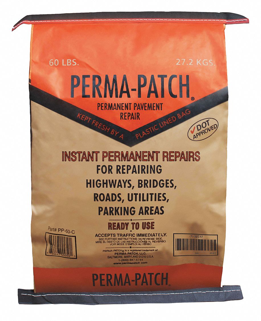 Cold patch a ready to use recycled asphalt product for the permanent patching of potholes cracks other defections in blacktop concrete it is odorless eliminates most of the voc vapors found in other patch materials stronger easier to use than other pothole repair products drive on immediately after use.