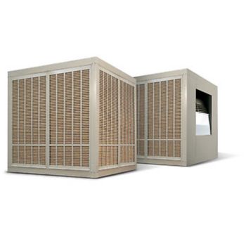 They use wet media evaporative pads to produce cool humidified air and generate 7500 cfm or more to distribute the cooled air through ductwork in large buildings.
